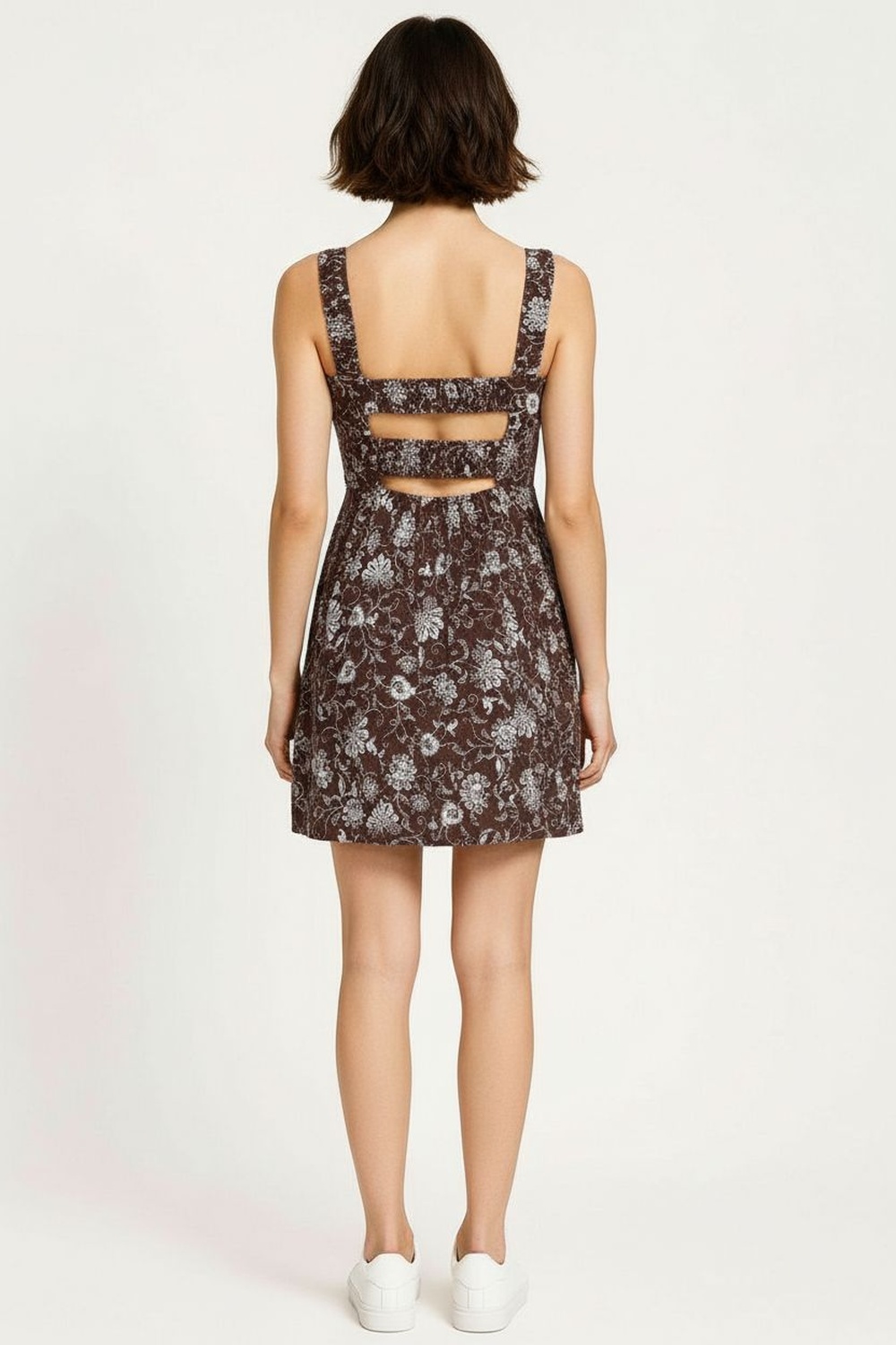 Vestido corto confeccionado en tejido crepón de textura ligera y fluida que brinda comodidad, diseño con tirantes anchos y escote recto, detalle de smock en cintura que define la silueta, espalda con aberturas decorativas que aportan un toque moderno, dobladillo con caída natural que realza el movimiento