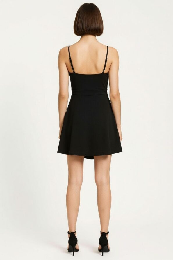 Jumper falda short escote cuadrado y tirantes delgados ajustables, zipper y cinta de amarre posterior